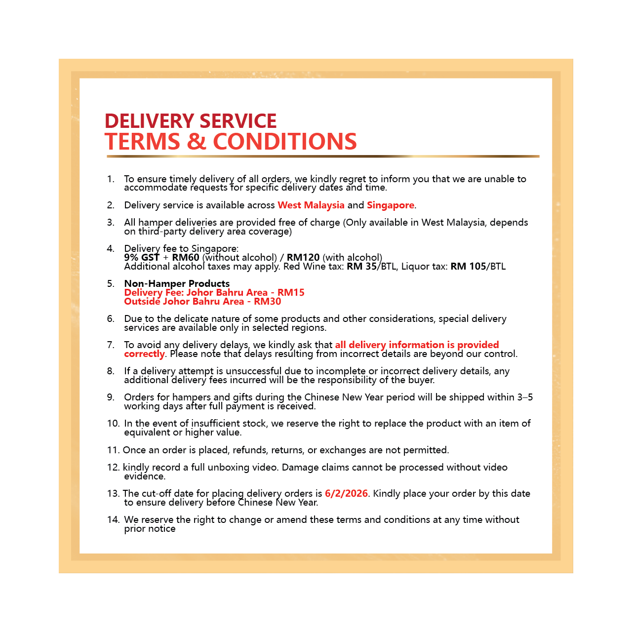 Free Delivery above RM250 within Malaysia